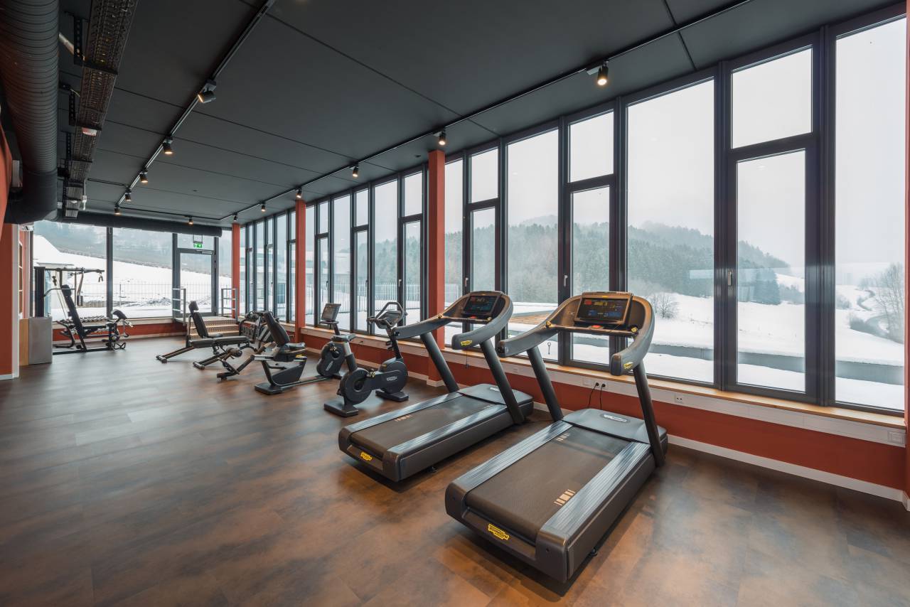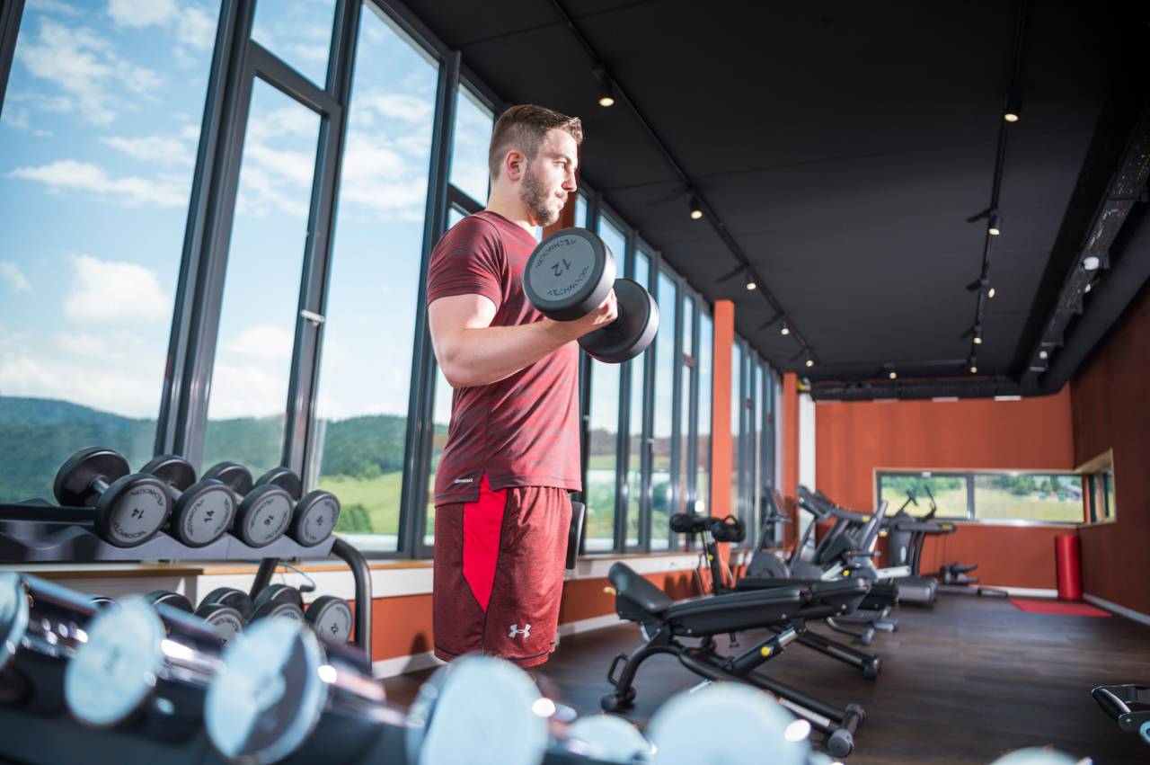 Licht, Panorama und exklusive Trainingsgeräte von technogym treffen im großen Panorama-Fitnessstudio harmonisch aufeinander und definieren damit einen wunderbaren Raum für vitale Erholung an einem der schönsten Plätze des Schreinerhofs hier im bayerischen Wald. Hoch oben im Schreinerhof finden Sie das neue Panorama-Fitnessstudio mit traumhaftem Blick auf die Bayerwaldberge. Neueste Technogym Geräte der Excite+ Collection, der anspruchsvolle Unica Evolution Kraft-Zirkel sowie der Adjustable Bench, Crunch Bench und Lower Bench samt umfangreichen Hantelpaket runden das Komplettpaket im Fitnessraum ab.