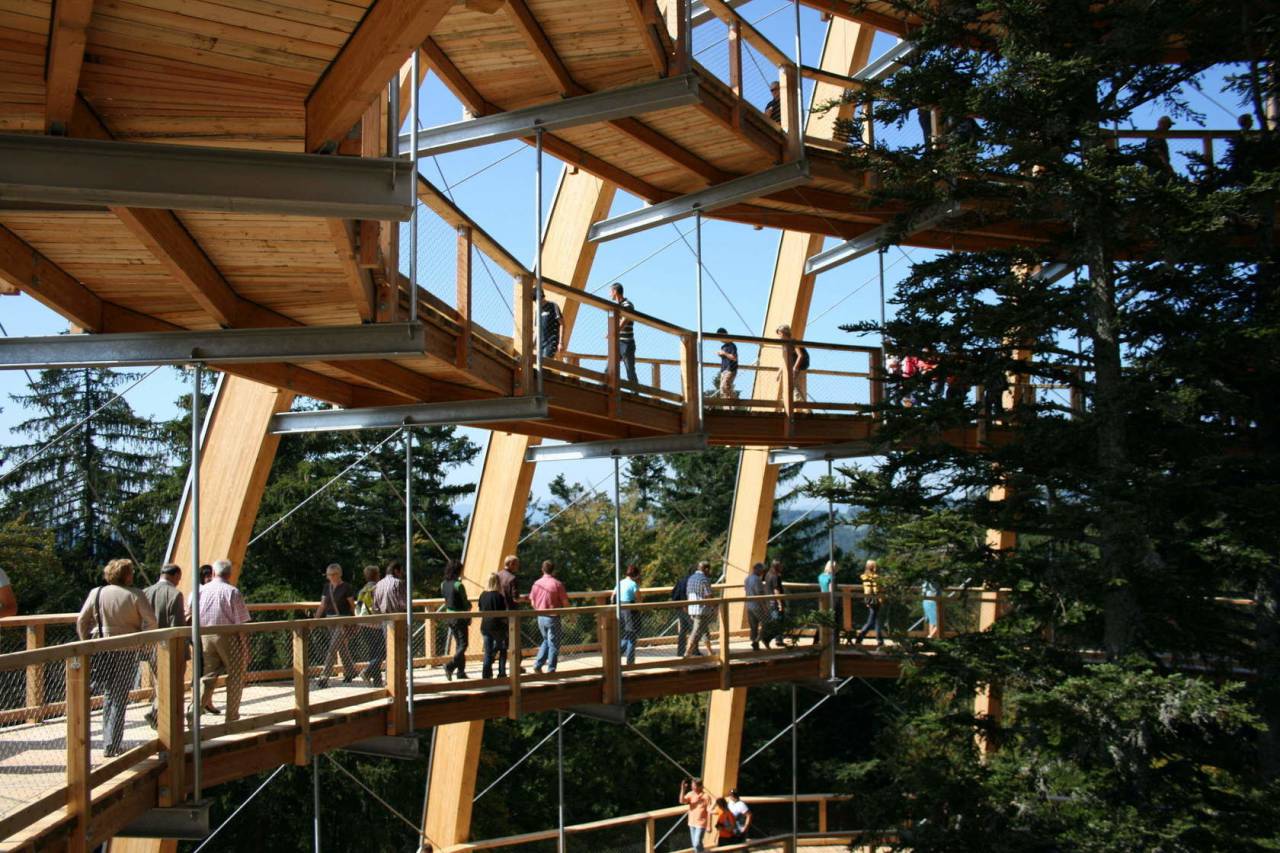 Der Steg ist 1300 Meter lang und endet auf der Plattform des beeindruckenden Aussichtsturms in einer Höhe von 44 Metern und verspricht einen nahezu grenzenlosen und fantastischen Ausblick: zum einen auf die gepflegte Kulturlandschaft des Bayerischen Waldes bis hin zu den Alpen, zum anderen in Richtung Lusen auf ein besiedlungsfreies Gebiet mit Wald und Wildnis pur.