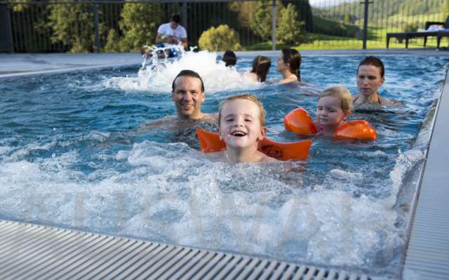 Badeurlaub für die ganze Familie! Im Familienhotel Schreinerhof finden Familien den perfekten Mix aus Abenteuer und Entspannung mit jeder Menge Badespaß in den Wasserwelten mit Aquapark, Rutschenpark, Wellenbad, Außenpools und Plantschbereichen für Kleinkinder. Perfekt abgerundet wird das Badeerlebnis mit unserem Bademantel-Bistro.