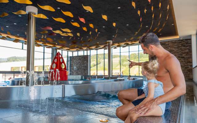 Erleben Sie unsere XXL "WATER FUN AREA" mit Wellenbad, Rutschen, Infinity Pool & Bademantel-Bistro.
