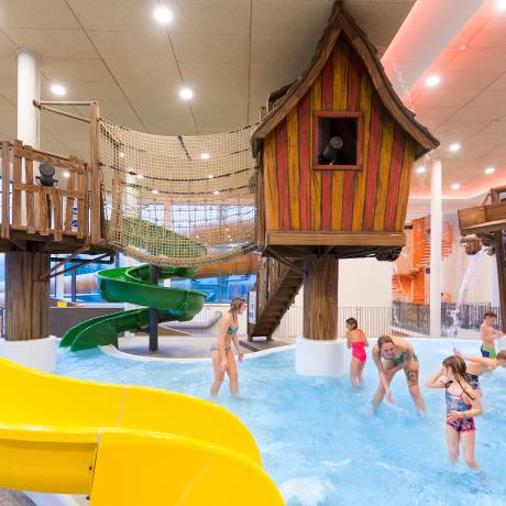 Erleben Sie unsere XXL "WATER FUN AREA" mit Wellenbad, Rutschen, Infinity Pool & Bademantel-Bistro.